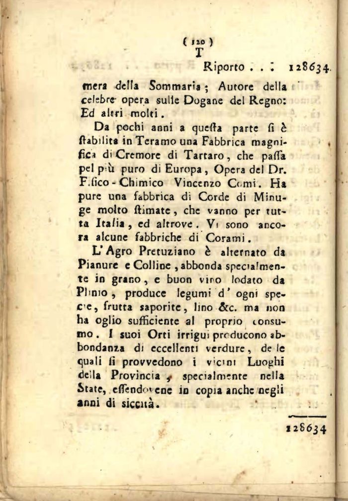 Da pochi anni a quefta parte fi è ^abilita in Teramo una Fabbrica magnifica di Cremore di Tartaro, che parta pel p ù puro di Europa, Opera del Dr. F.lieo - Chimico Vincenzo Orni. Ha pure una fabbrica di Corde di Minu-ge molto ftimatc, che vanno per tutta Ita/ia , ed altrove . Vi sono ancora alcune fabbriche ai Corami.
