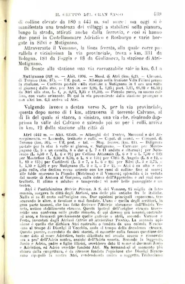 Mut iu'iiano (3*21 in. — Abit. 1996. — .Manti, di Atri (km. li,2). tir, orni, di Teramo (km. 37). l'IT. post. — Albergo nella trazione Villa Fiiiaui pre*. ì dazione. — Corriera posale • alia stazione a Mutignano in I ora una volt•• .1 giorno; dalla sta/, p.-r Atri in ore 2,2U, L. 1,23; pnrt. 11,10 «• lt3.:»0 ; da Atri alla staz. L. 1, />. 0,15, 9,3.a e 11.30). — Piccolo paesi», su amena colma, con vasto orizzonti- Di qui la via provenienti- dalia stazione pr>-e.uc e c«in altri km. 6,2 arriva ad Atri.