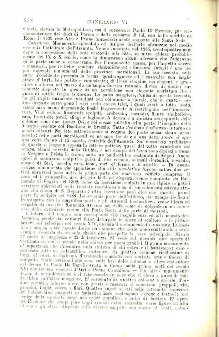 l hiclr, elevala in Mi trupolit ma, ma il success,,., P.ulo III Firn,-e, ce - ,. -, omandazione del duca di l'arma e della consorte di lui, con In.Ila salila da Rama i la;i'J re* Atri Panne Immediatamente soggette alla Santa Sede. Cailrdralt. Monumento splendido ed insigne dell'arte abruzzese nel medio