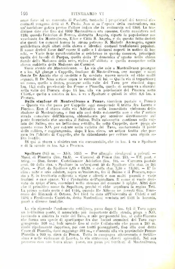 Da Teramo i20;i tu.) la via provinciale, detta Viscerale, esce i S.O. Essa si sviluppa sui contrafforti appennini, che staccan-ilosi a oriente, dal nodo del Gran Sasso separano rispettivamente le valli dei fiumi Tordino, Volitano, Piomba, Fino e Tavo. Il «ito andamento è quasi parallelo alla catena del Gran Sasso tenendosi ad eguale distanza fra questi e la marina adriatica. I.a via quindi è molto tormentata dovendo attraversare tante valli e tante colline che la separano. K quindi una strada ili montagna per eccellenza.