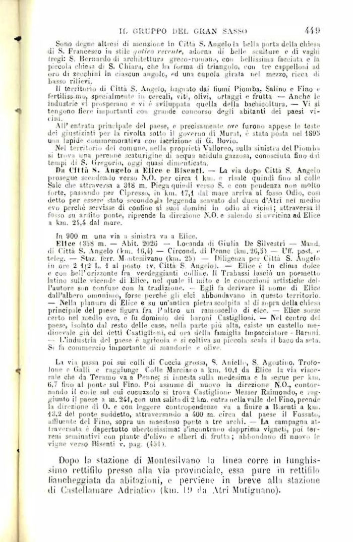 A km. 30.1, a sinistra, una breve strada conduce al piccolo villaggio di Scorrano e scende nella valle del Vomano, e a km, 31 una via, pure a sinistra (ilo m.), sale in km. 1.4 a