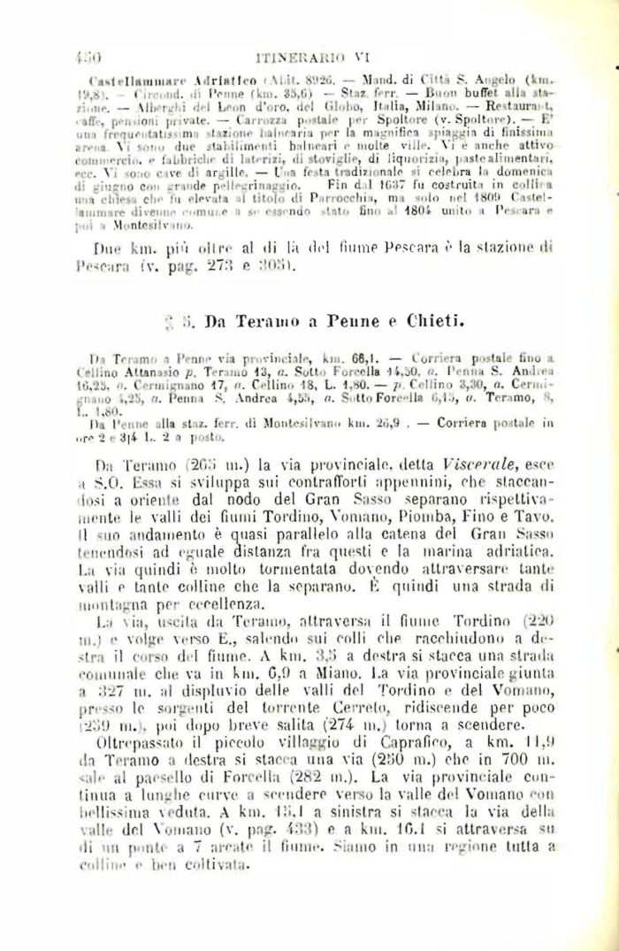 t'na sia che si stacca a km. 42,1 a sinistra conduce, diramandosi. ad Atri in km. !(,! e in km. 11,4 ad Elice ed a S. Angelo.