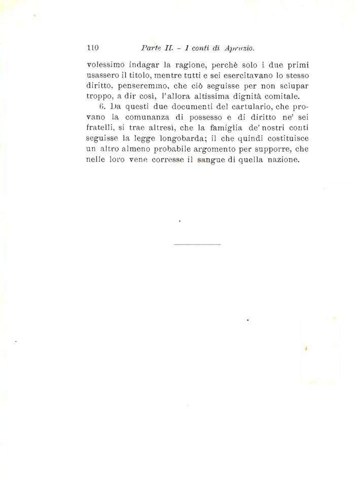 6. Da questi due documenti del cartulario, che provano la comunanza di possesso e di diritto ne' sei fratelli, si trae altresì, che la famiglia de'nostri conti seguisse la legge longobarda; il che quindi costituisce un altro almeno probabile argomento per supporre, che nelle loro vene corresse il sangue di quella nazione.
