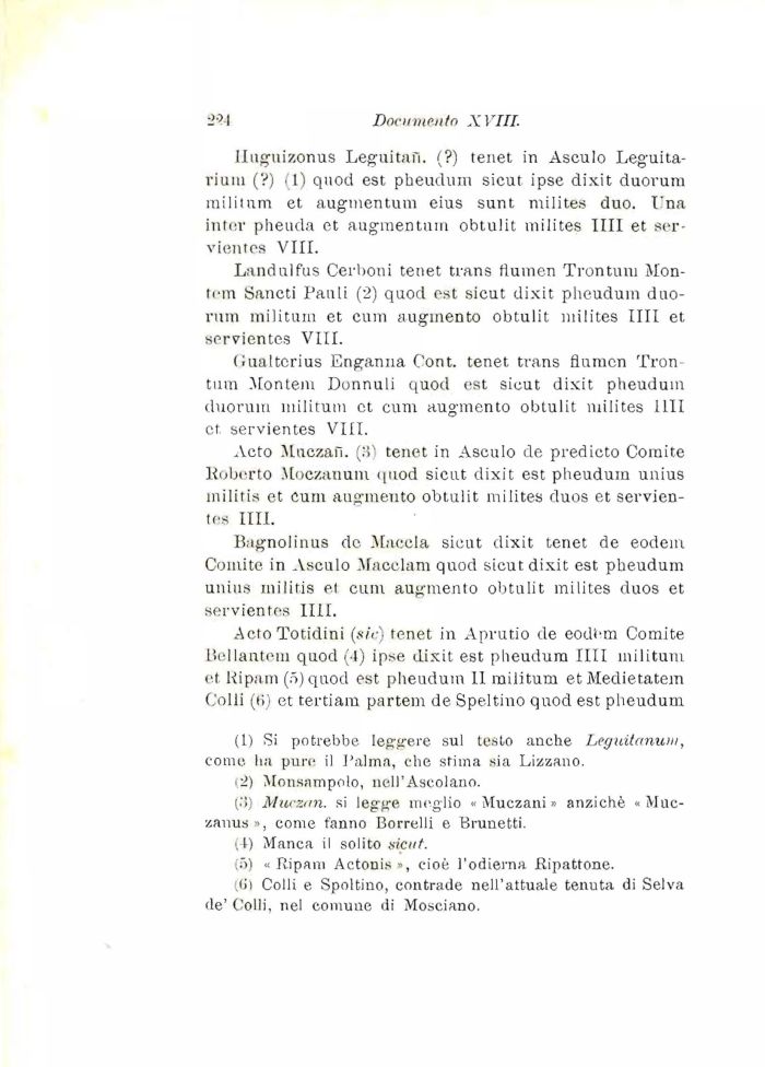 ActoTotidini (sic) tenet in Aprutio de eodem Comite Bellantein quod (-1) ipse dixit est pheudum IIII militum et Ripam (5) quod est pheuduin 11 militum et Medietatem Colli (ti) et tertiam partem de Speltino quod est pheudum
