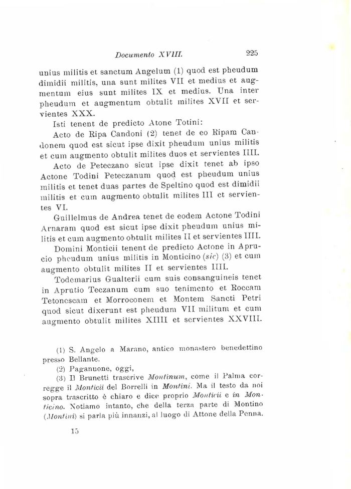(3) Il Brunetti trascrive Moutinum, come, il Palma corregge il Monticii del Borrelli in Montini. Ma il testo da noi sopra trascritto è chiaro e dice proprio Monticii e in Monticino. Xotiamo intanto, che della terza parte di Montino (Montini) si parla più innanzi, al luogo di Attone della Penna.