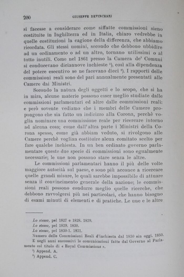 Numero delle Commissioni Reali d'inchiesta dal 1830 sin oggi. 1^°. E negli anni successivi le comunicazioni fatte dal Governo ni Parlamento col titolo di « Royal Commissiona ». ') Append. A. ") Append. C.
