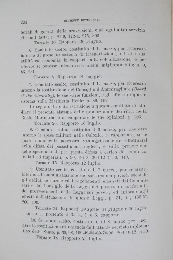 7. Comitato scelto, costituito il 1. marzo, per ricercare intorno la costituzione del Consiglio d'Ammiragliato (Board of the Admiralty), le sue varie funzioni, e gli effetti di questo sistema sulla Marineria Reale; p. 86, 102.