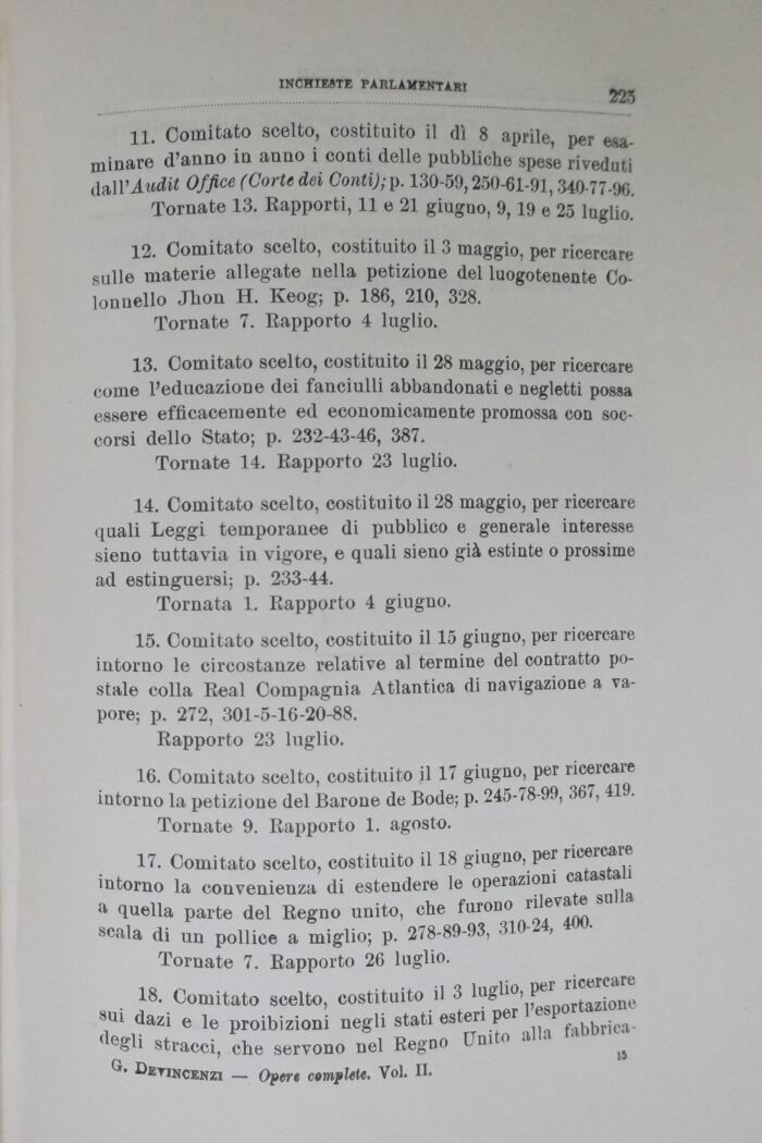 13. Comitato scelto, costituito il 28 maggio, per ricercare come l'educazione dei fanciulli abbandonati e negletti possa essere efficacemente ed economicamente promossa con soccorsi dello Stato; p. 232-43-46, 387.