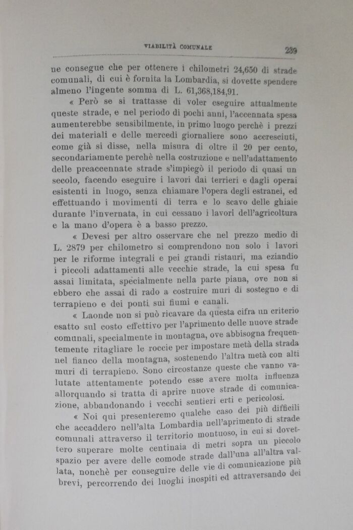 ne consegue che per ottenere i chilometri 34,6.50 di strad-comunali di cui è fornita la Lombardia, si dovette «pender, almeno l'ingente somma di L. 61 368 184 91