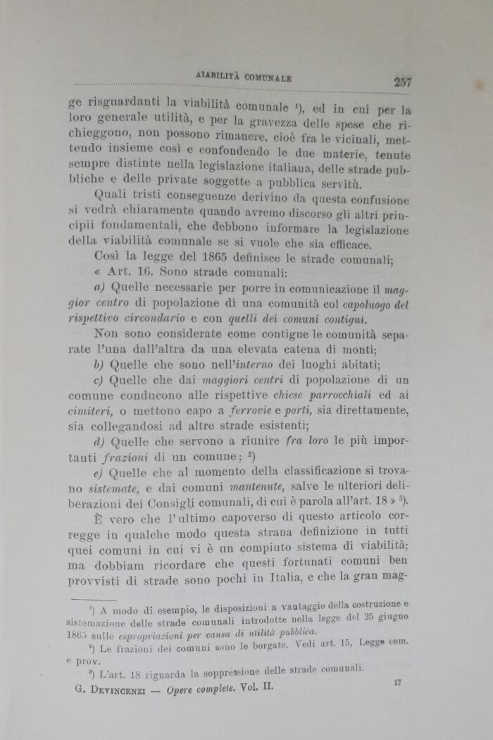 1 TL'art. 18 riguarda la soppressione delle strade comunali G. Devincenzi Upeic complete. Voi. IL