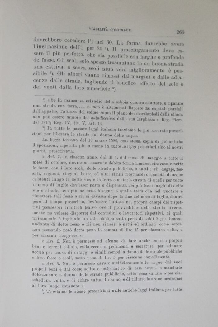 « Art 2. Non è permesso ad alcuno di faro anch» sopra i proprii beni e terreni callaje, callareccie, impedimenti e serrature, per adunare acque per causa di ortaggi o simili comodi a danno delle strade pubbliche o loro fosse e scoli, sotto pena di lire 5 per ciascuno impedimento.
