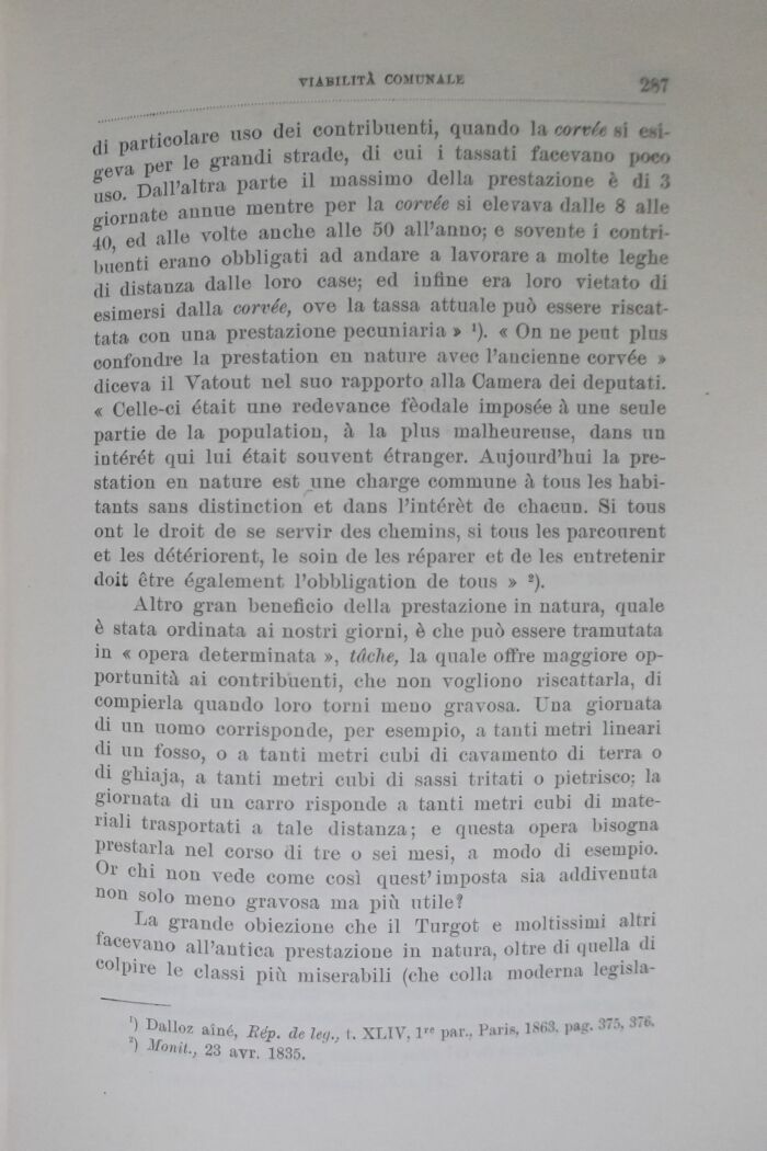 La grande obiezione che il Turgot e moltissimi altri acevano all'antica prestazione in natura, oltre di quella «li colpire le classi più miserabili (che colla moderna legisla-