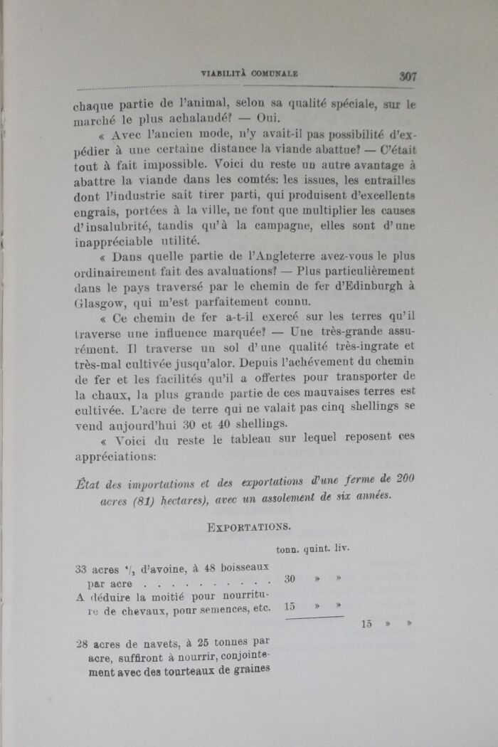 « Ce chemin de fer a-t-il exercé sur les terree qu'il traverse une influence inarquée? Une très-grande aaau-rément. Il traverse uu sol d'une qualité très-iugrate et très-mal cultivée jusqu'alor. Depuis l'achévement du chemin de fer et les facilités qu'il a offertes pour transporter de la chaux, la plus grande partie de ces mauvaises terres est cultivée. L'acre de terre qui ne valait pas cinq shellings se veud aujourd'hui 30 et 40 shelliugs.