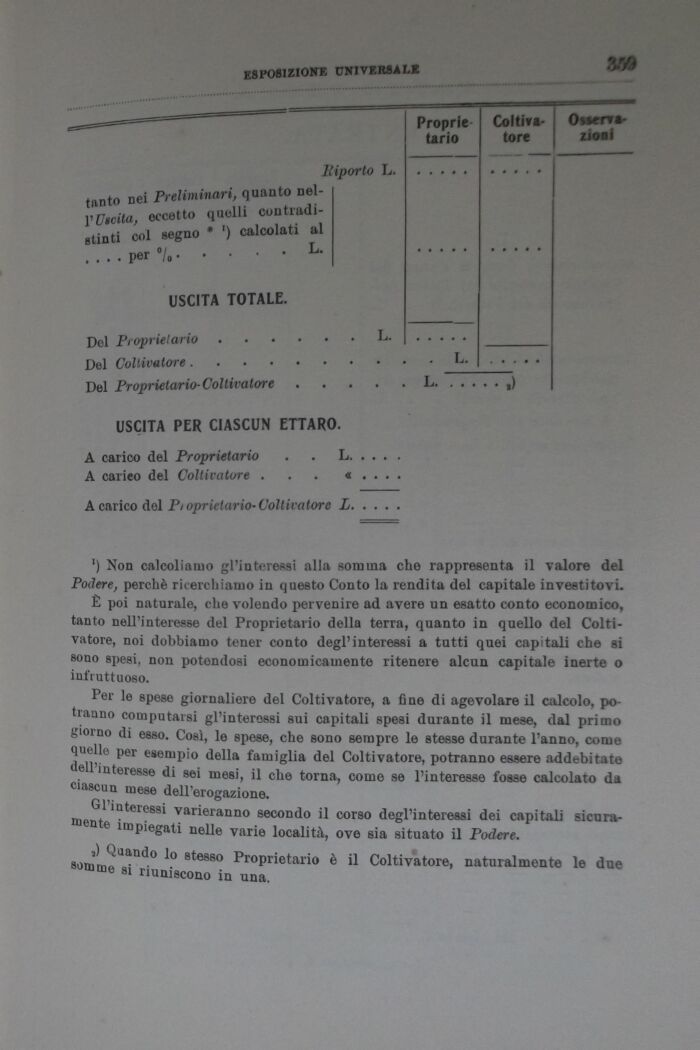 Č poi naturale, che volendo pervenire ad avere un esatto conto economico, tanto nell'interesse del Proprietario della terra, quanto in quello del Coltivatore, noi dobbiamo tener conto degl'interessi a tutti quei capi tali che si sono spesi, non potondosi economicamente ritenere alcun capitale inerte o infruttuoso.