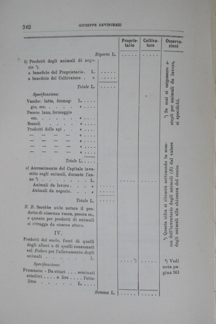 N. B. Sarebbe utile notare il prodotto di ciascuna vacca, pecora ec., e quanto per prodotti di animali si ritragga da ciascun ettaro.
