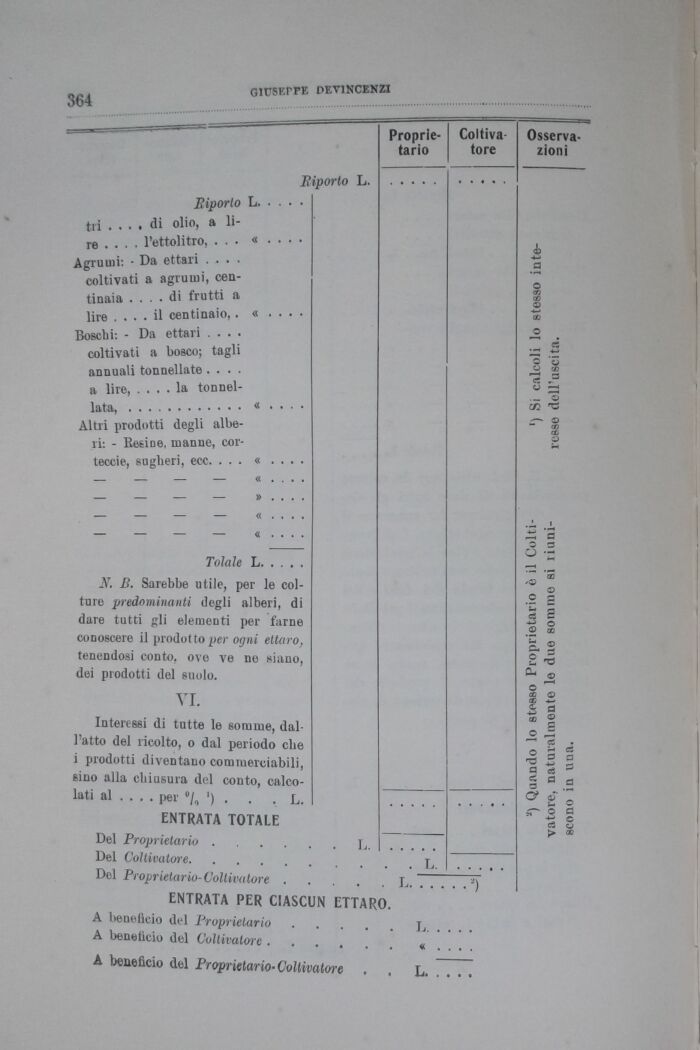Agrumi: " Da ettari ... coltivati a agrumi, centinaia .... di frutti a lire .... il centinaio,. « " " " " Boschi: - Da ettari .... coltivati a boato; tagli annuali tonnellate.... a lire, .... la tonnellata, ............ « . . . .