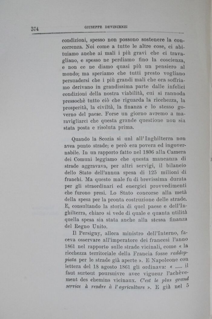 Il Persigny, allora ministro dell'Interno, faceva osservare all'imperatore dei francesi l'anno 1801 nel rapporto sulle strade vicinali, come « la ricchezza territoriale della Francia fosse raddoppiata per le strade già aperte ». E Napoleone con