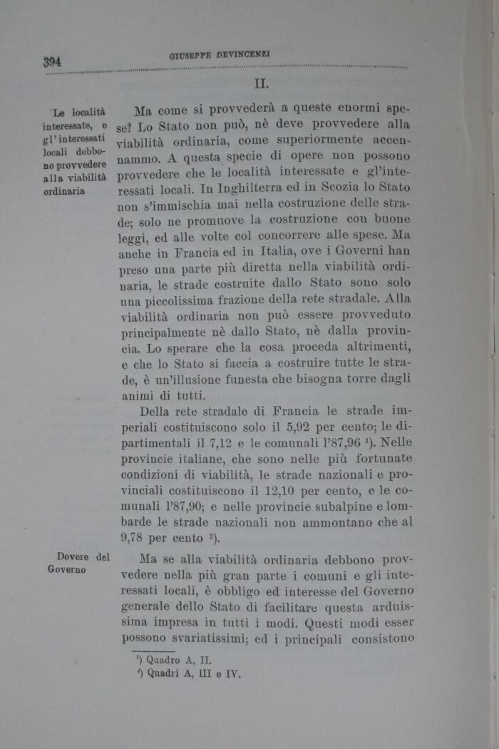Ma se alla viabilità ordinaria debbono provvedere nella più gran parte i comuni e gli interessati locali, è obbligo ed interesse del Governo generale dello Stato di facilitare questa arduis-siina impresa in tutti i modi. Questi modi esser possono svariatissimi; ed i principali consistono