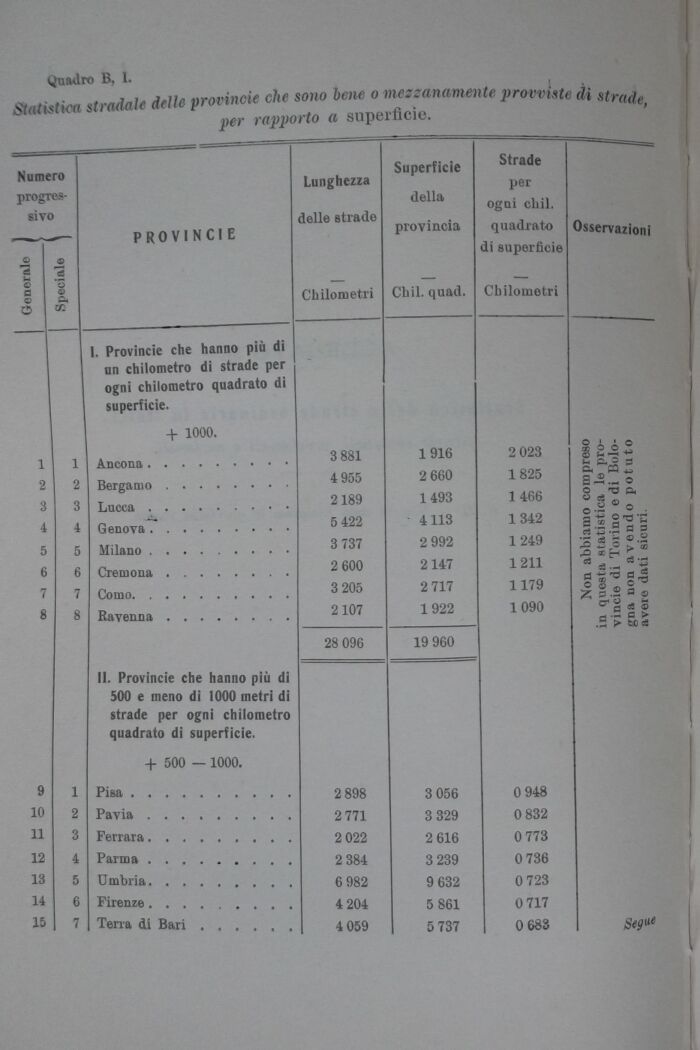 Statistica stradale dello provincie che sono bene o mezzanamente provviste di strade,