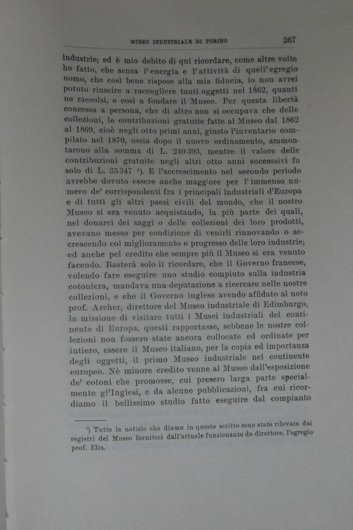industrie; ed è mio debito di qui ricordare, come altre volte J0 fatto, che senza l'energia e l'attività di quell'egregio uomo, che così bene rispose alla mia fiducia, io non avrei potuto riuscire a raccogliere tanti oggetti nel 1862, quanti uè raccolsi, e così a fondare il Museo. Per questa libertà concessa a persona, che di altro non si occupava che delle collezioni, le contribuzioni gratuite fatte al Museo dal 1862 al 1869, cioè negli otto primi anni, giusto l'inventario compilato nel 1870, ossia dopo il nuovo ordinamento, ammontarono alla somma di L. 240393, mentre il valore delle contribuzioni gratuite negli altri otto anni successivi fu solo di L. 35347 E l'accrescimento nel secondo periodo avrebbe dovuto essere anche maggiore per l'immenso numero de' corrispondenti fra i principali industriali d'Europa e di tutti gli altri paesi civili del mondo, che il nostro Museo si era venuto acquistando, la più parte dei quali, nel donarci dei saggi o delle collezioni dei loro prodotti, avevano messo per condizione di venirli rinnovando o accrescendo col miglioramento e progresso delle loro industrie; ed anche pel credito che sempre più il Museo si era venuto facendo. Basterà solo il ricordare, che il Governo francese, volendo fare eseguire uno studio compiuto sulla industria cotoniera, mandava una deputazione a ricercare nelle nostre collezioni, e che il Governo inglese avendo affidato al noto prof. Archer, direttore del Museo industriale di Edimburgo, la missione di visitare tutti i Musei industriali del continente di Europa, questi rapportasse, sebbene le nostre collezioni non fossero state ancora collocate ed ordinate per intiero, essere il Museo italiano, per la copia ed importanza degli oggetti, il primo Museo industriale nel continente europeo. Nè minore credito venne al Museo dall'esposizione de' cotoni che promosse, cui presero larga parte specialmente gl'Inglesi, e da alcune pubblicazioni, fra cui ricordiamo il bellissimo studio fatto eseguire dal compianto