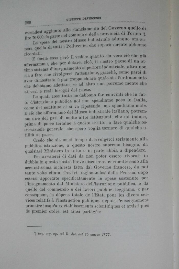E facile cosa però il vedere quanto sia vero ciò che già affermammo, che per dotare, cioè, il nostro paese di un ottimo sistema d'insegnamento superiore industriale, altro non sia a fare che rivolgervi l'attenzione, giacché, come parci di aver dimostrato è pur troppo chiaro quale sia l'ordinamento che dobbiamo adottare, se ad altro non porremo mente che ai veri e reali bisogni del paese.