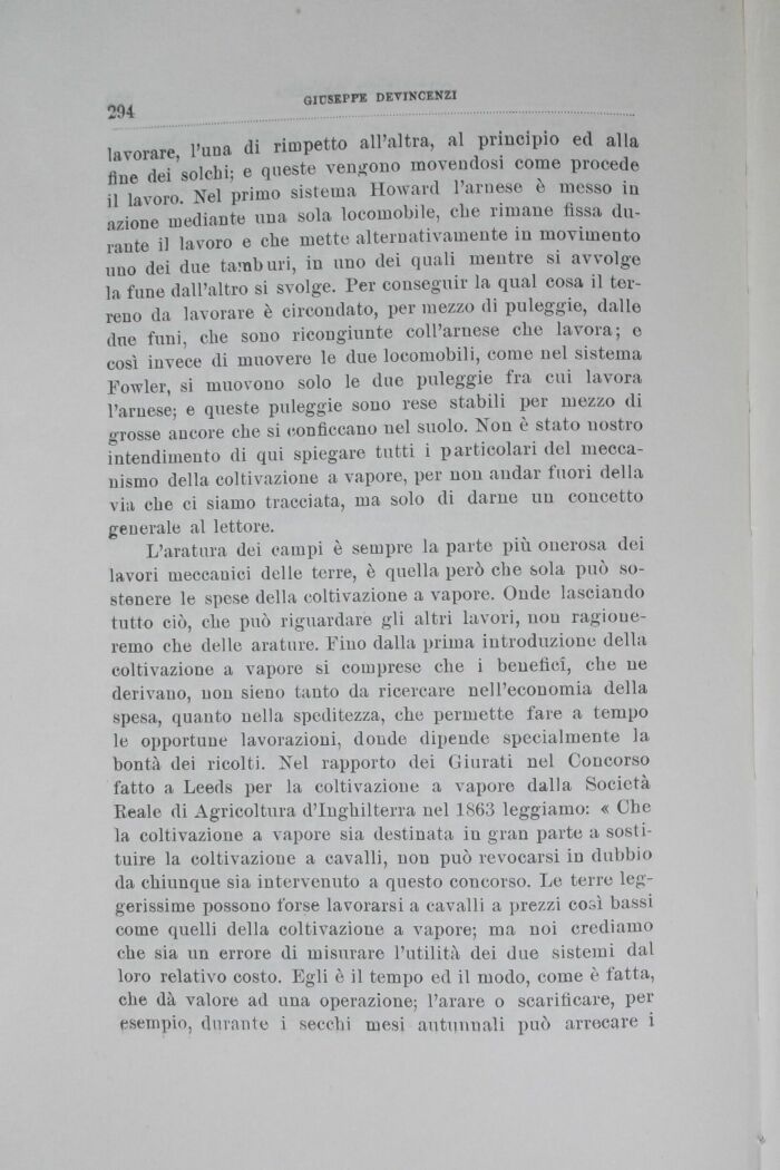 L'aratura dei campi è sempre la parte più onerosa dei lavori meccanici delle terre, è quella però che sola può sostenere le spese della coltivazione a vapore. Onde lasciando tutto ciò, che può riguardare gli altri lavori, non ragioneremo che delle arature. Fino dalla prima introduzione della coltivazione a vapore si comprese che i benefici, che ne derivano, non sieno tanto da ricercare nell'economia della spesa, quanto nella speditezza, che permette fare a tempo le opportune lavorazioni, donde dipende specialmente la bontà dei ricolti. Nel rapporto dei Giurati nel Concorso fatto a Leeds per la coltivazione a vapore dalla Società Reale di Agricoltura d'Inghilterra nel 1863 leggiamo: « Che la coltivazione a vapore sia destinata in gran parte a sostituire la coltivazioue a cavalli, non può revocarsi in dubbio da chiunque sia intervenuto a questo concorso. Le terre leggerissime possono forse lavorarsi a cavalli a prezzi così bassi come quelli della coltivazione a vapore; ma noi crediamo che sia un errore di misurare l'utilità dei due sistemi dal loro relativo costo. Egli è il tempo ed il modo, come è fatta, che dà valore ad una operazione; l'arare o scarificare, per esempio, durante i secchi mesi autunnali può arrecare i