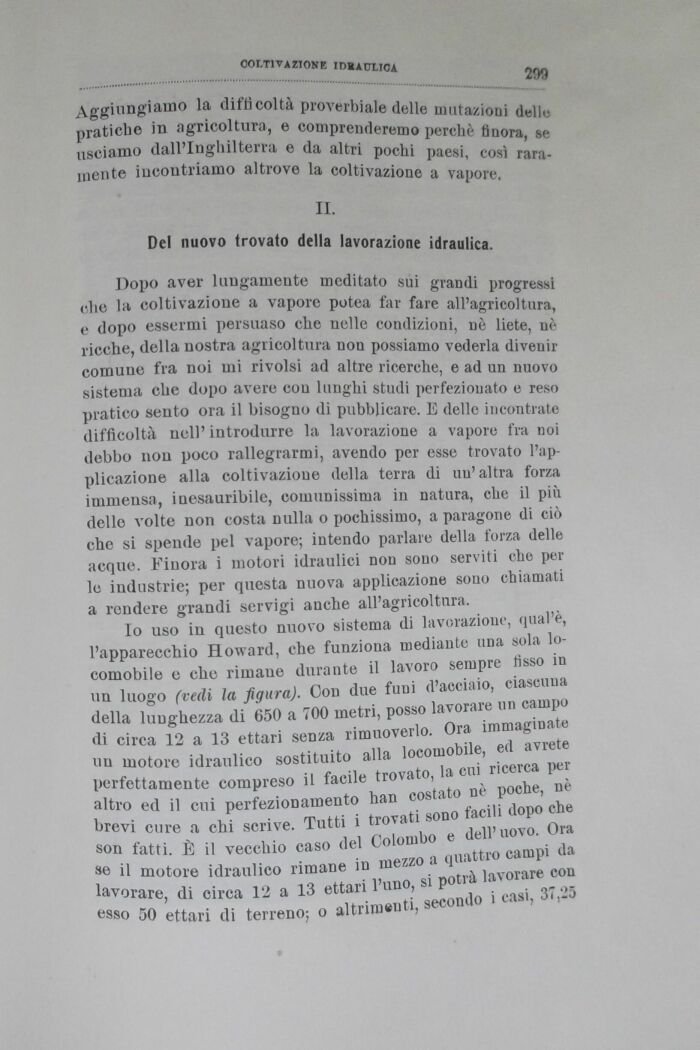 Dopo aver lungamente meditato sui grandi progressi che la coltivazione a vapore potea far fare all'agricoltura, e dopo essermi persuaso che nelle condizioni, nè liete, nè ricche, della nostra agricoltura non possiamo vederla divenir comune fra noi mi rivolsi ad altre ricerche, e ad un nuovo sistema che dopo avere con lunghi studi perfezionato e reso pratico sento ora il bisogno di pubblicare. E delle incontrate difficoltà nell'introdurre la lavorazione a vapore fra noi debbo non poco rallegrarmi, avendo per esse trovato l'applicazione alla coltivazione della terra di un'altra forza immensa, inesauribile, comunissima in natura, che il più dello volte non costa nulla o pochissimo, a paragone di ciò che si spende pel vapore; intendo parlare della forza delle acque. Finora i motori idraulici non sono serviti che pelle industrie; per questa nuova applicazione sono chiamati a rendere grandi servigi anche all'agricoltura.