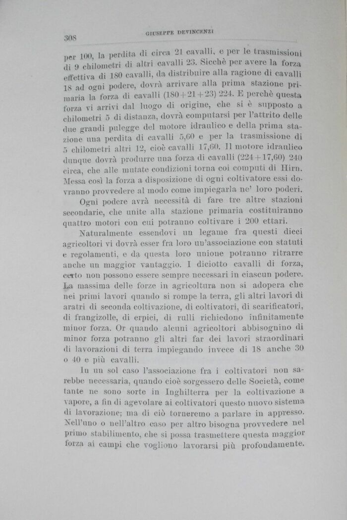 Naturalmente essendovi un legame fra questi dieci agricoltori vi dovrà esser fra loro uu'associazione con statuti e regolamenti, e da questa loro unione potranno ritrarre anche un maggior vantaggio. I diciotto cavalli di forza, certo non possono essere sempre necessari in ciascun podere. La massima delle forze in agricoltura non si adopera che nei primi lavori quando si rompe la terra, gli altri lavori di aratri di seconda coltivazione, di coltivatori, di scarificatori, di frangizolle, di erpici, di rulli richiedono infinitamente minor forza. Or quando alcuni agricoltori abbisognino di minor forza potranno gli altri far dei lavori straordinari di lavorazioni di terra impiegando invece di 18 anche 30 o 40 e più cavalli.