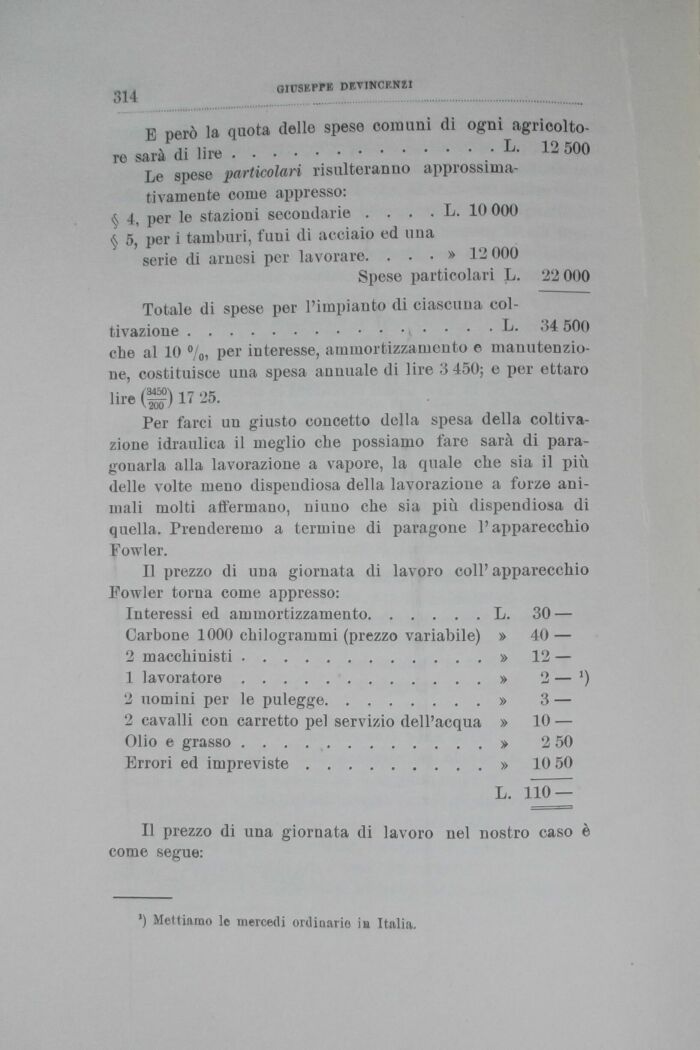 Per farci un giusto concetto della spesa della coltivazione idraulica il meglio che possiamo fare sarà di paragonarla alla lavorazione a vapore, la quale che sia il più delle volte meno dispendiosa della lavorazione a forze animali molti affermano, niuno che sia più dispendiosa di quella. Prenderemo a termine di paragone l'apparecchio Fowler.