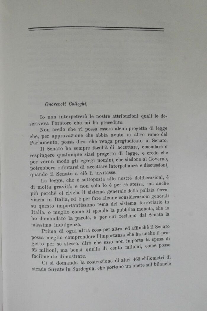 Prima di ogni altra cosa per altro, ed affinchè il Senato possa meglio comprendere l'importanza che ha anche il progetto per se stesso, dirò che esso non importa la spesa di 52 milioni, ma bensì quella di cento milioni, come posso facilmente dimostrare.