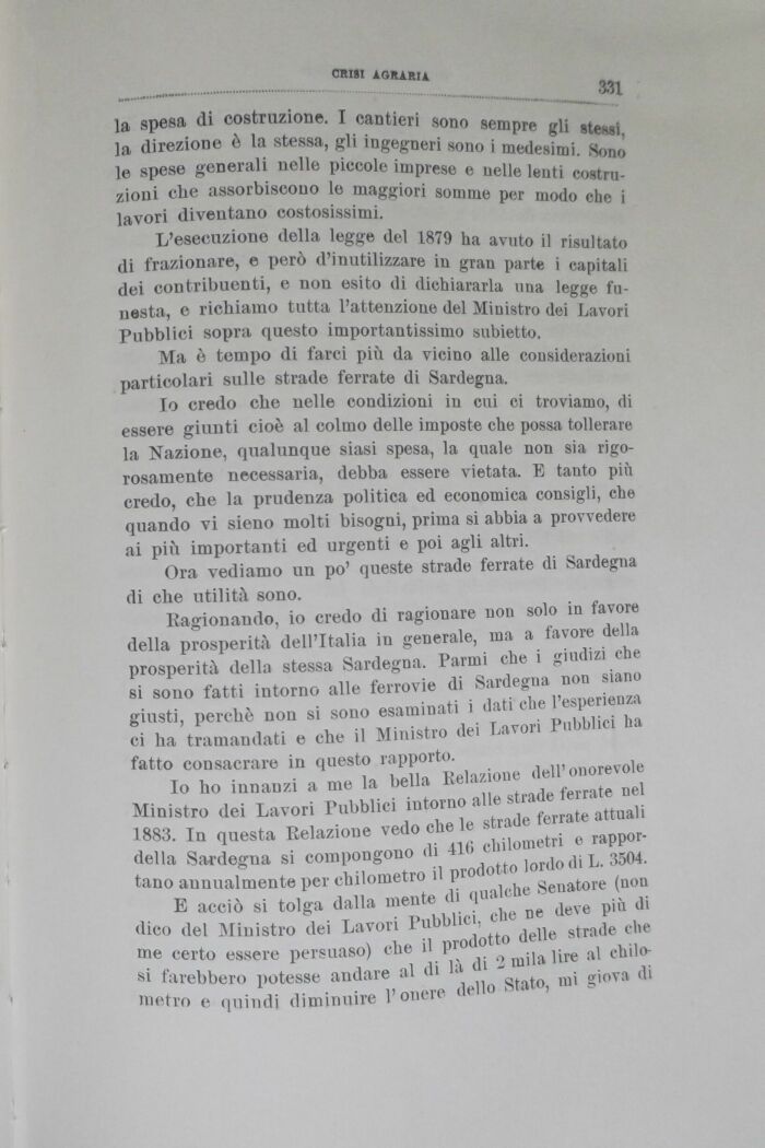 Io credo che nelle condizioni in cui ci troviamo, di essere giunti cioè al colmo delle imposte che possa tollerare la Nazione, qualunque siasi spesa, la quale non sia rigorosamente necessaria, debba essere vietata. E tanto più credo, che la prudenza politica ed economica consigli, che quando vi sieno molti bisogni, prima si abbia a provvedere ai più importanti ed urgenti e poi agli altri.