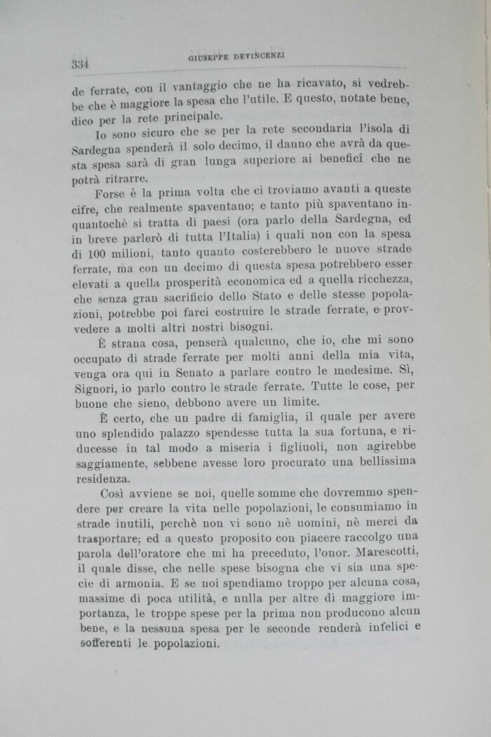 È strana cosa, penserà qualcuno, che io, che mi sono occupato di strade ferrate per molti auni della mia vita, venga ora qui in Senato a parlare contro le medesime. Sì, Signori, io parlo contro le strade ferrate. Tutte le cose, per buone che sieno, debbono avere un limite.