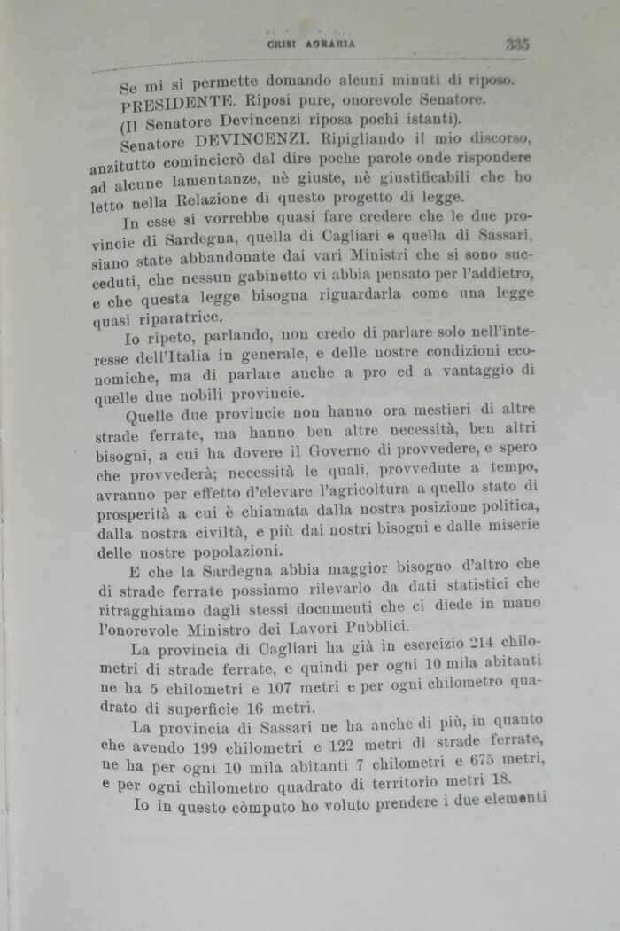 In esse si vorrebbe quasi fare credere che le due Provincie di Sardegna, quella di Cagliari e quella di Sassari, siano state abbandonate dai vari Ministri che si sono succeduti, che nessun gabinetto vi abbia pensato per l'addietro, e che questa legge bisogna riguardarla come una legge quasi riparatrice.