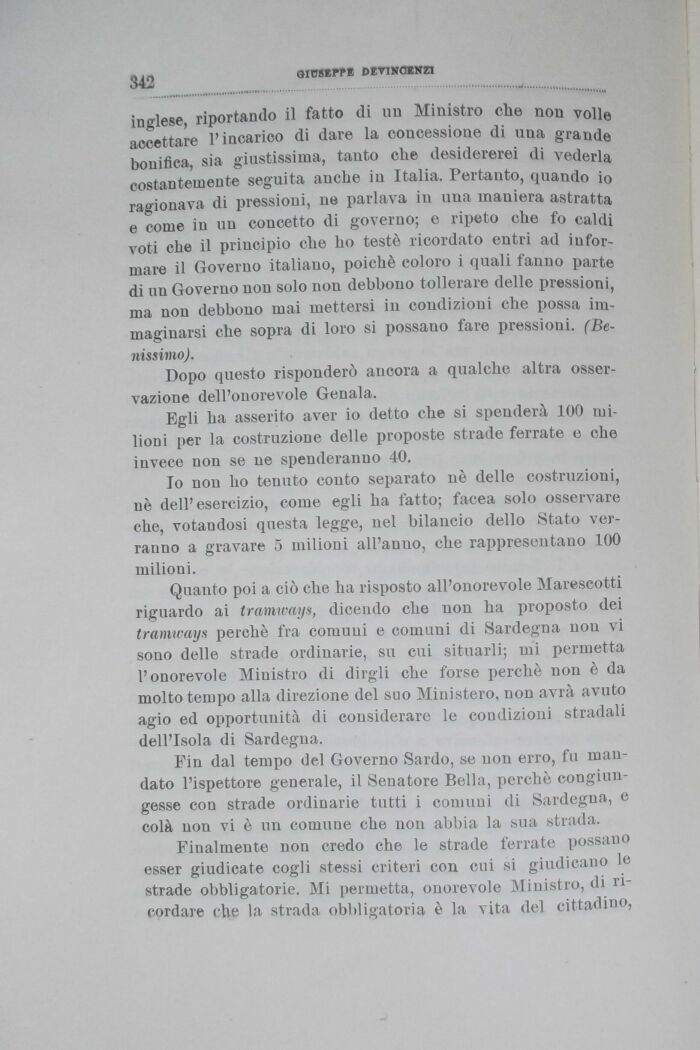 Fin dal tempo del Governo Sardo, se non erro, fu mandato l'ispettore generale, il Senatore Bella, perchè congiungesse con strade ordinarie tutti i comuni di Sardegna, e colà non vi è un comune che non abbia la sua strada.
