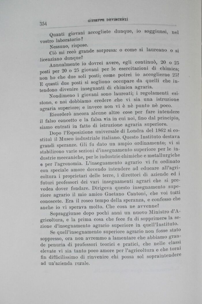 Ricorderò ancora alcune altre cose per fare intendere il falso concetto e la falsa ria in cui noi, fino dal principio, siamo entrati in fatto di istruzione agraria superiore.