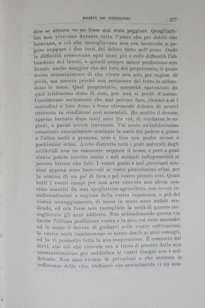 dendo, ed ora forse non raccogliete la metà di quanto raccoglievate gli anni addietro. Non abbandonando questa via farete l'ultima perdizione vostra e la mia; voi siete mezzadri ed io sento il dovere di guidarvi nelle vostre coltivazioui; le vostre sorti cambieranno se sarete docili ai miei consigli, ed io vi prometto tutta la mia cooperazione. E comincio dal dirvi, che ciò che ricevete ora a titolo di prestiti dalla mia amministrazione per soddisfare ai vostri bisogni non è sufficiente. Non amo viviate di privazioni e che sentiate le sofferenze della vita. Ordinerò clic annualmente \i sia som-