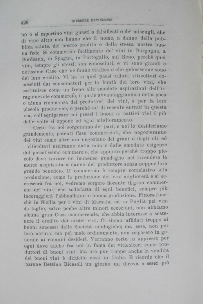 Certo fra noi sorgeranno del pari, e noi lo desideriamo grandemente, potenti Case commerciali, che negozieranno dei vini come altre ora negoziano dei grani e degli oli, ed