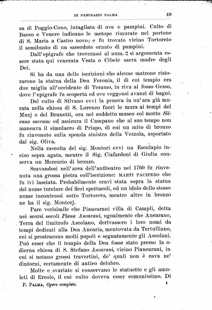sa di Poggio-Cono, intagliata di uve e pampini. Culto di Bacco e Venere indicano le metope rimurate nel portone di S. Maria a Castro novo; e fu trovato vicino Tortoreto il semibusto di un sacerdote ornato di pampini.