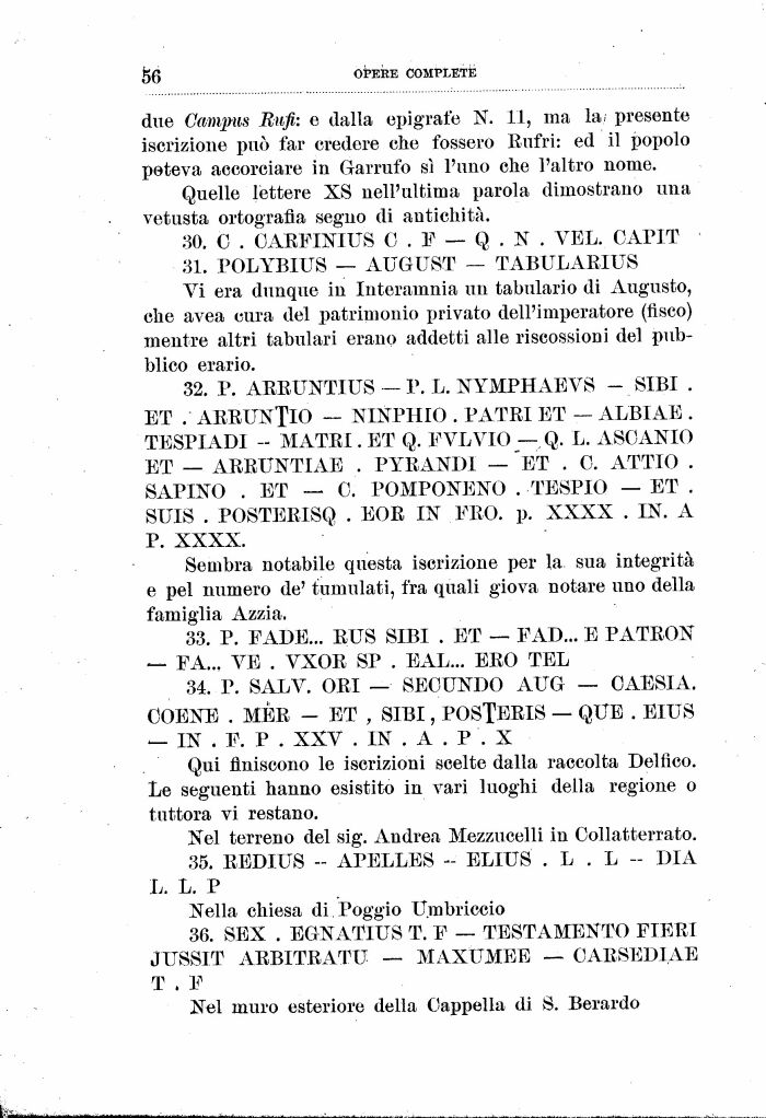 Vi era dunque in Interaumia un tabulano di Augusto, che avea cura del patrimonio privato dell'imperatore (fisco) mentre altri tabulari erano addetti alle riscossioni del pubblico erario.