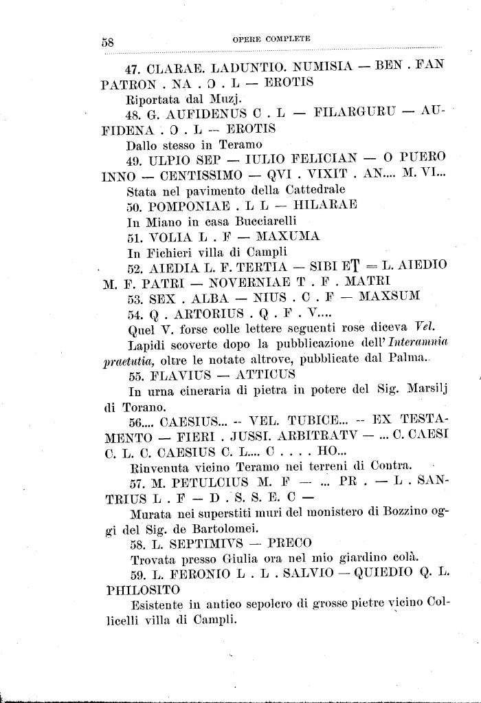 Quel V. forse colle lettere seguenti rose diceva Vel. Lapidi scoverte dopo la pubblicazione dell' Interamnia praetutia, oltre le notate altrove, pubblicate dal Palma.