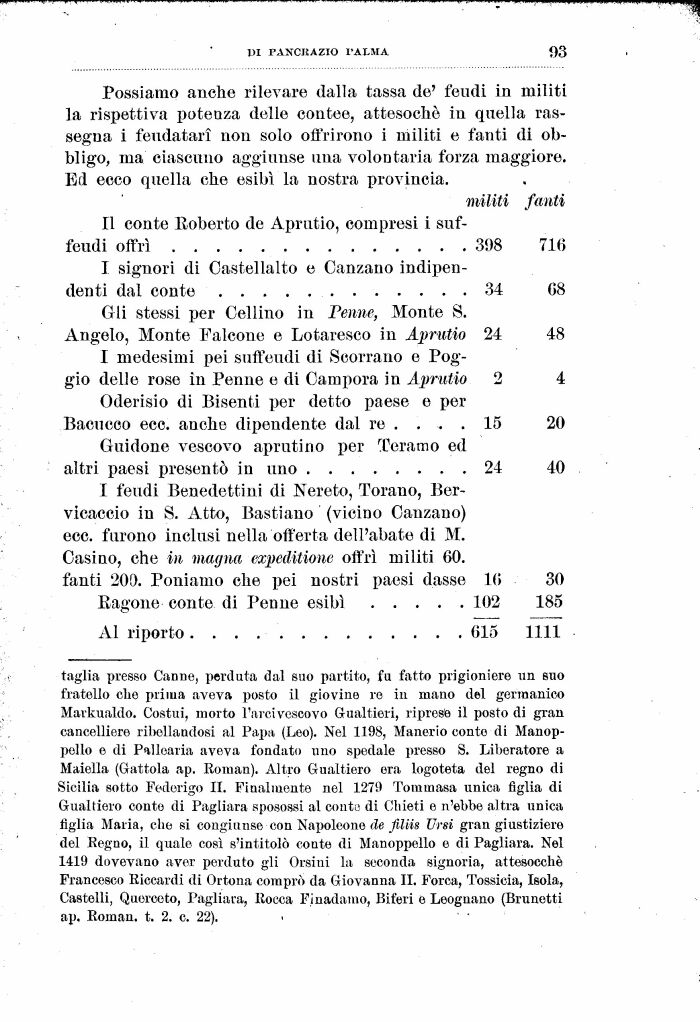 I feudi Benedettini di Nereto, Torano, Ber-vicaccio in S. Atto, Bastiano (vicino Ganzano) ecc. furono inclusi nella offerta dell'abate di M. Casino, che in magmi expeditiane offrì militi 60. fanti 200. Poniamo che pei nostri paesi dasse 16 30