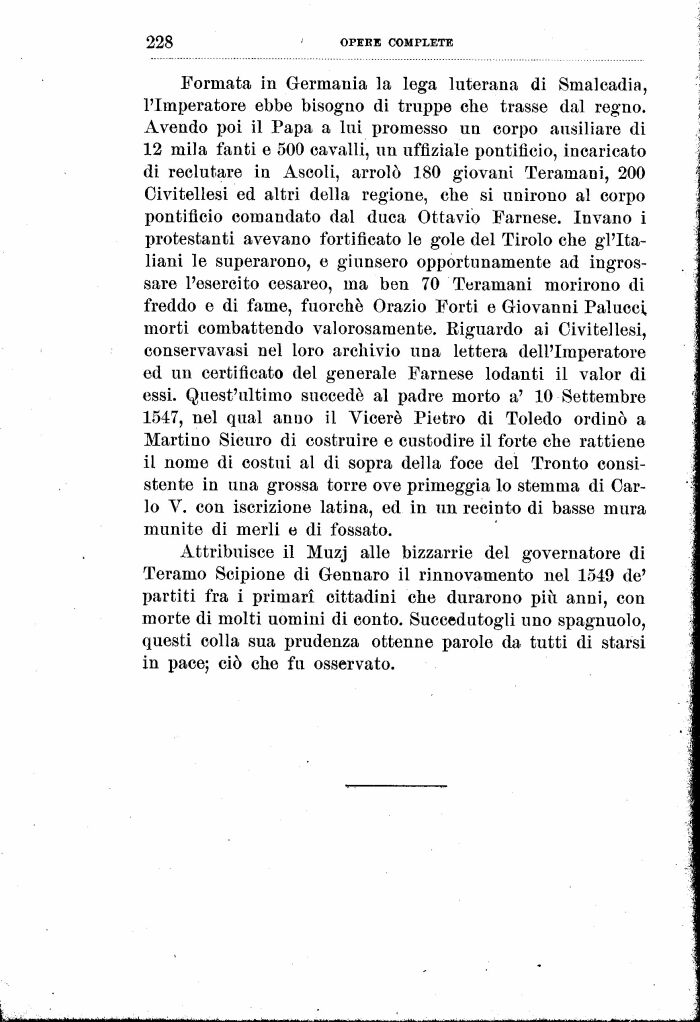 Formata in Germania la lega luterana di Smalcadia, l'Imperatore ebbe bisogno di truppe che trasse dal regno. Avendo poi il Papa a lui promesso un corpo ausiliare di 12 mila fanti e 500 cavalli, un uffiziale pontificio, incaricato di reclutare in Ascoli, arrolò 180 giovani Teramani, 200 Civitellesi ed altri della regione, che si unirono al corpo pontificio comandato dal duca Ottavio Farnese. Invano i protestanti avevano fortificato le gole del Tirolo che gl'Italiani le superarono, e giunsero opportunamente ad ingrossare l'esercito cesareo, ina ben 70 Teramani morirono di freddo e di fame, fuorché Grazio Forti e Giovanni Palucci, morti combattendo valorosamente. Riguardo ai Civitellesi, conservavasi nel loro archivio una lettera dell'Imperatore ed un certificato del generale Farnese lodanti il valor di essi. Quest'ultimo succede al padre morto a' 10 Settembre 1547, nel qual anno il Viceré Pietro di Toledo ordinò a Martino Sicuro di costruire e custodire il forte che rattiene il nome di costui al di sopra della foce del Tronto consistente in una grossa torre ove primeggia lo stemma di Carlo V. con iscrizione latina, ed in un recinto di basse mura munite di merli e di fossato.