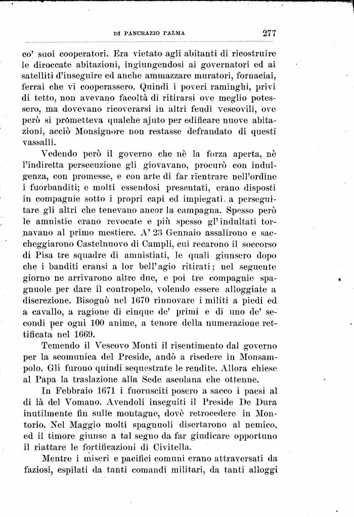 In Febbraio 1671 i fuorusciti posero a sacco i paesi al di là del Vomano. Avendoli inseguiti il Preside De Dura inutilmente fin sulle montagne, dovè retrocedere in Mon-torio. Nel Maggio molti spagnuoli disertarono al nemico, ed il timore giunse a tal segno da far giudicare opportuno il riattare le fortificazioni di Civitella.
