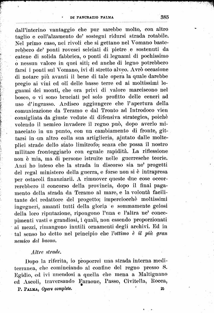 Dopo la riferita, io proporrei una strada interna mediterranea, che cominciando al confine del regno presso S. Egidio, ed ivi unendosi a quella che mena a Maltignano ed Ascoli, traversando Faraone, Passo, Oivitella, Eocca, P. PALMA, Opere complete. ' 25