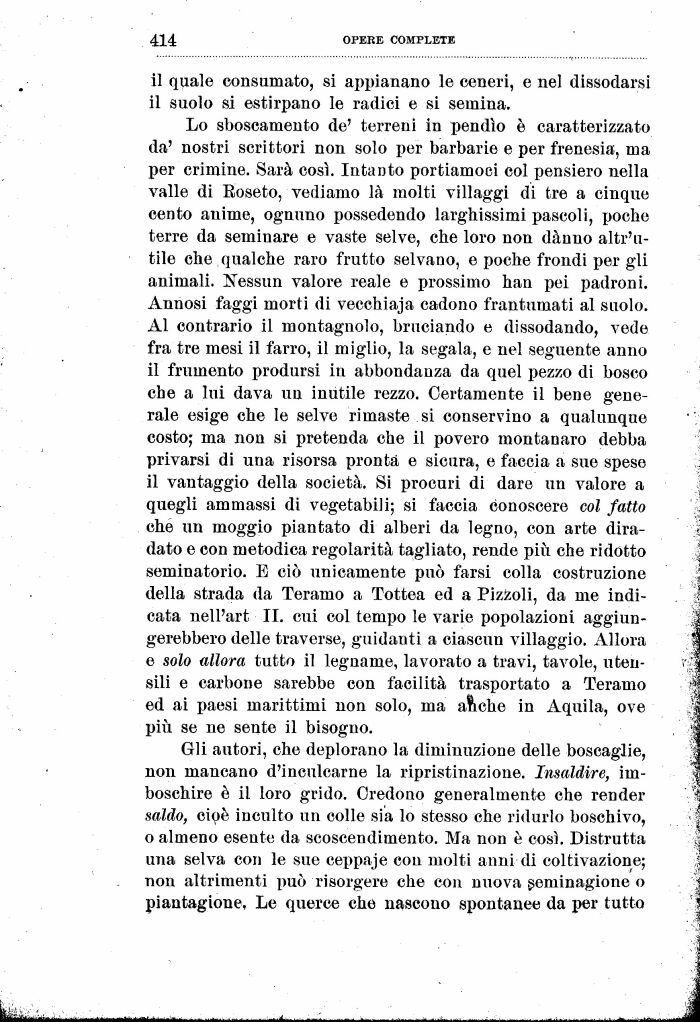 Gli autori, che deplorano la diminuzione delle boscaglie, non mancano d'inculcarne la ripristinazione. Insaldire, imboschire è il loro grido. Credono generalmente che render saldo, cioè iuculto un colle sia lo stesso che ridurlo boschivo, o almeno esente da scoscendimento. Ma non è così. Distrutta una selva con le sue ceppaje con molti anni di coltivazione; non altrimenti può risorgere che con nuova seminagione o piantagione, Le querce che nascono spontanee da per tutto