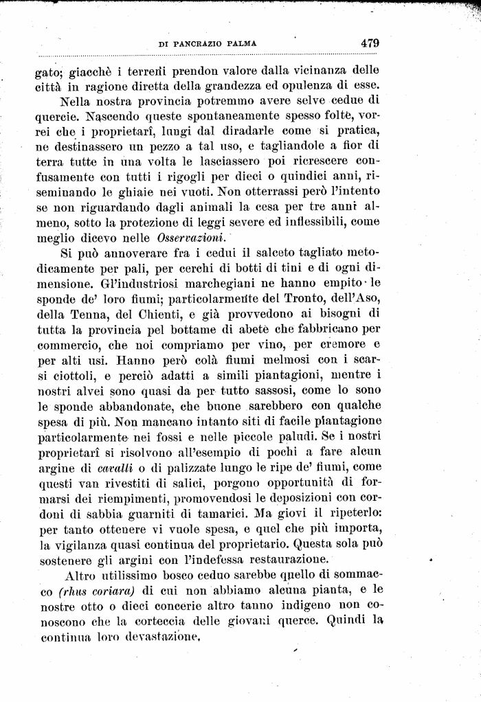 Altro utilissimo bosco ceduo sarebbe quello di sommac-co (rhus coriaraj di cui non abbiamo alcuna pianta, e le nostre otto o dieci concerie altro tanno indigeno non conoscono che la corteccia delle giovani querce. Quindi la continua loro devastazione.