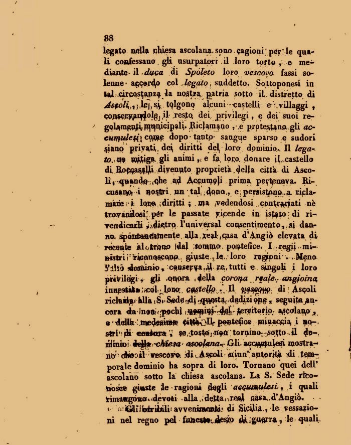 li confessano gli usurpatori il loro tprto, e mediante il duca di Spoleto loro vescovo fassi so-lenne- a$cord,o col legato , suddetto. Sottoponesi in tal .Ctfqqs^apz^ 4a no^jpa patria sotto it distretto di Ascoli,, ; .le/, % ^lgoiiQ alcuni •-castelli e .villaggi , ,iil* resto, dei, privilegi, e dei suoi re-gob*mgnjti7 jqqqicipaÙ* Ricfomtuo ,-.e protestino, gli ac-CHmule$i\ coffi dopo tantp; sangue sparso e sudori §ianp privati, dei diritti del, loro dominio., Il lega* tp. m W^tfiga gli animi y, e fo, lopo. donare il,,castello di. Bpf^a^^lM divenuto proprietà,della città di Asco-li 4 quandi ;( e persistono..4 ripla-mare i lor^; diritti ; ma cedendosi cputr^nati ne trovànHosil pér le passate vicende in isftiordi rivendicarli ^distro l'universal consentimento,,si danno, spònfcaaefatoente alla.,qasa d'Augiò elevata di recente ÀlofcronP fdal Somtn» pontefice. I regij ministri ir ^i(sonosc; G&stelfp .' Il ydi Asgoli riclaàtyu hllà &v Sede