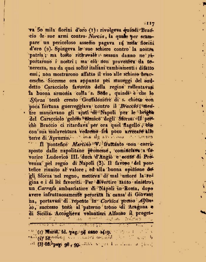 Va 5o mila fiorini d'orò (ì)t rivolgeva quindirBra<£-ciò le sue armi contro « Norcia, la quale $>er scampare un pericoloso assedio pagava 14 trtfla' fiorini d'oiro (2). Spingeva le* sue schiere contro' la nostra patria ;- ma tosto ritfratyalèf nessun danno ne'rir poetarono i nostri ; maeiòr iidn provéHfóada t#-'nereziia, ma da quei soliti1 italiani cambiametìti s difatto essi; nòn mostrarono affatto il viso alle schieri'btbo-cesche. Siccome ora arfifunto pfei manéggi del suddetto Caracciolo favorito della regina' rallentava^! la buona àrmòiia colla s. Sfide, quindi1 è: che lo Sforza testfe creato Gorifàlòniére di' s.