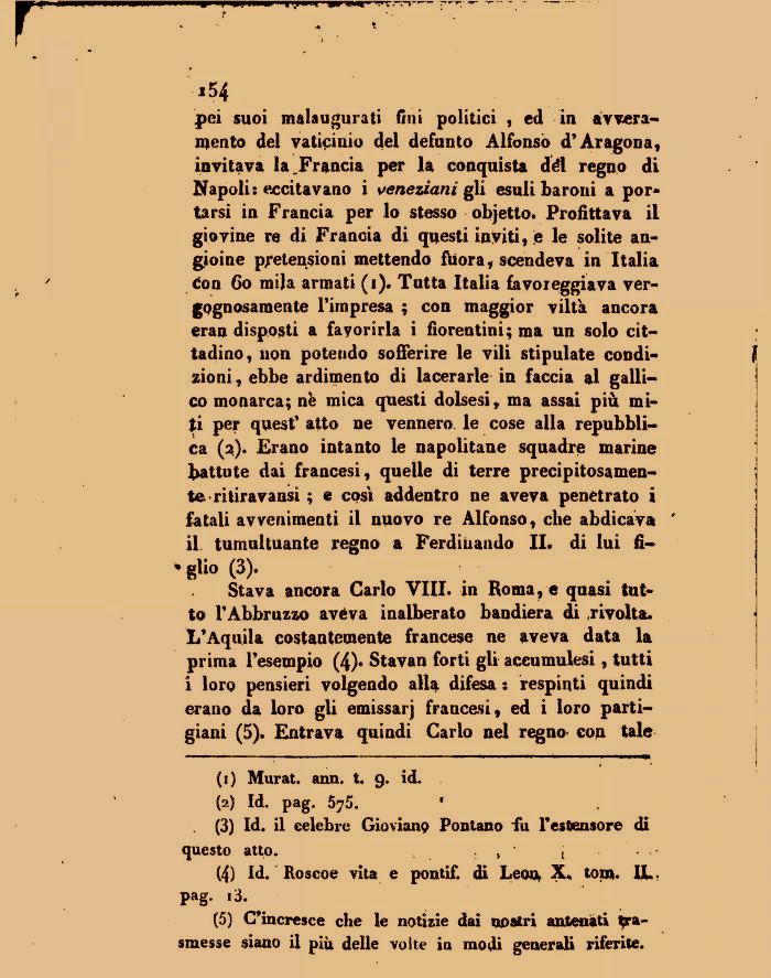 Stava ancora Carlo VIII. in Roma, e quasi tutto l'Abbruzzo aveva inalberato bandiera di .rivolta. L'Aquila costantemente francese ne aveva data la prima l'esempio (4). Stavan forti gli accumulesi, tutti i loro pensieri volgendo alla difesa : respinti quindi erano da loro gli emissarj francesi, ed i loro partigiani (5). Entrava quindi Carlo nel regno con tale