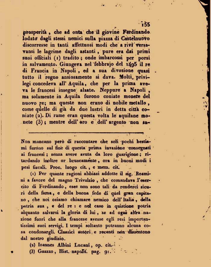 Non mancano però di raccontare che soli pochi bestiami furano sul fine di questa prima invasiòne consegnati ai francesi ; senza avere avuta da loro guarigione ; ritardando inpltre or bruscamente, ora in buoni modi i pesi fiscali. Pro©, luogo cit., e mera, citi